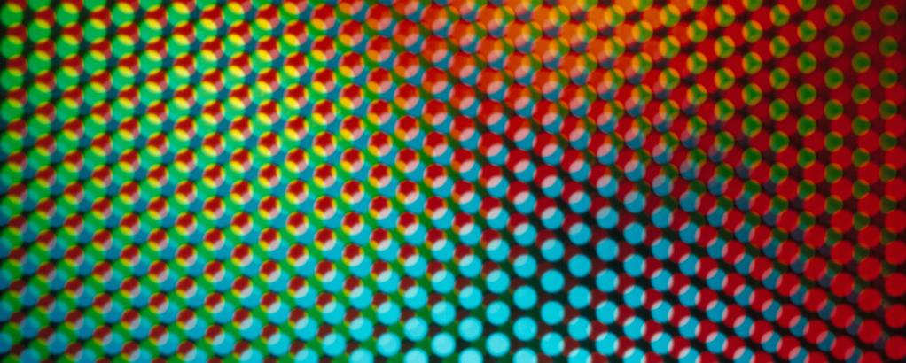 The effect of chromatic transformation is highly refined since the cross-shaped blade is set between the light sources and the screen, covering alternatively one of the light sources after the other, and resulting into different chromatic nuances.