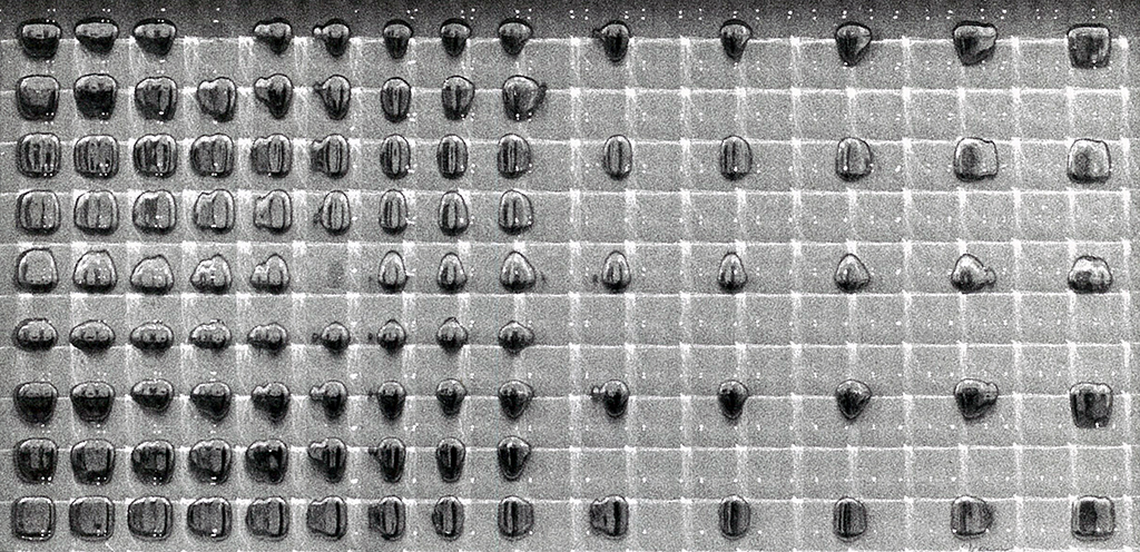 In Reticoli frangibili, the uncontrollable and unpredictable variation of the image is the effect of the interference of the texture of wire reinforced glass with different signs.
